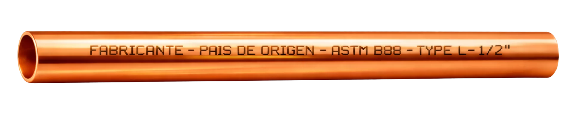 Nuestra tubería de cobre se entrega debidamente marcada conforme a los requisitos de la norma ASTM B88, permitiendo una identificación clara y confiable en todo momento.